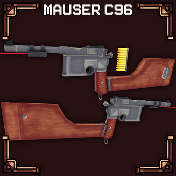 A Low-Poly version of the Mauser C96 (or Red9 for the Resident Evil fans) with an optional custom laser sight and a stock.
